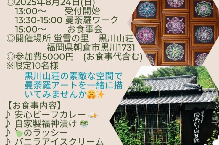 【蛍雪の里 黒川山荘 曼荼羅アート体験会&お食事会】 2025年8月24日(日)